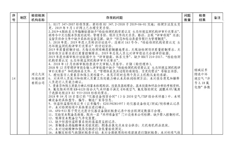6 | 石家莊 | 河北環海檢測科技有限公司 | 19 | 整改(暫停) |