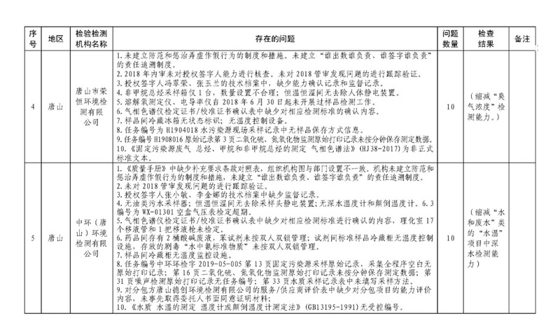26 | 唐山 | 唐山市唐群環境檢測有限公司 | 11 | 整改(暫停) |