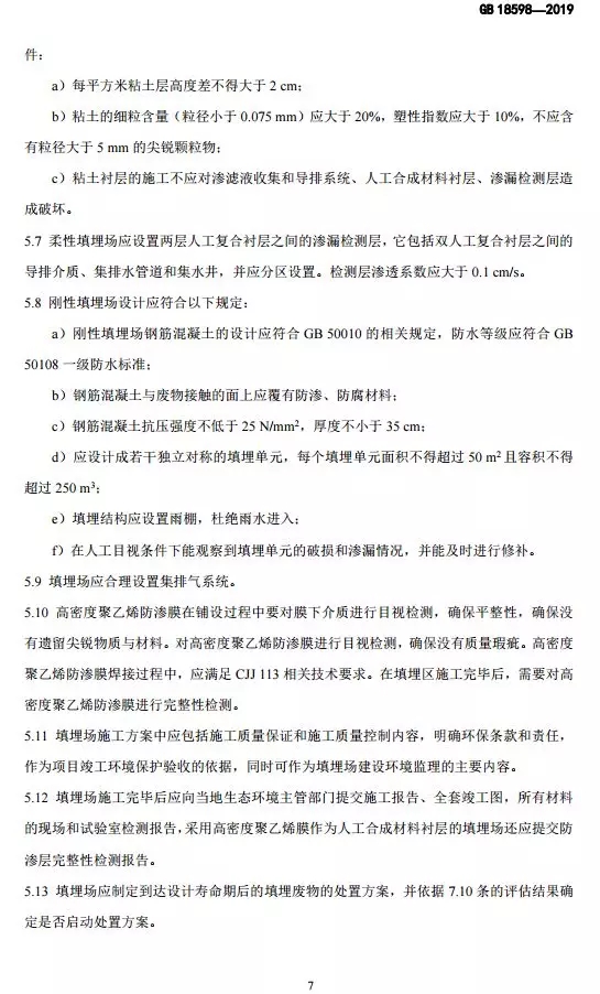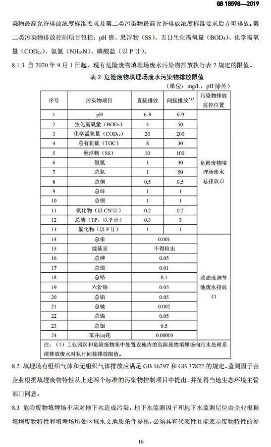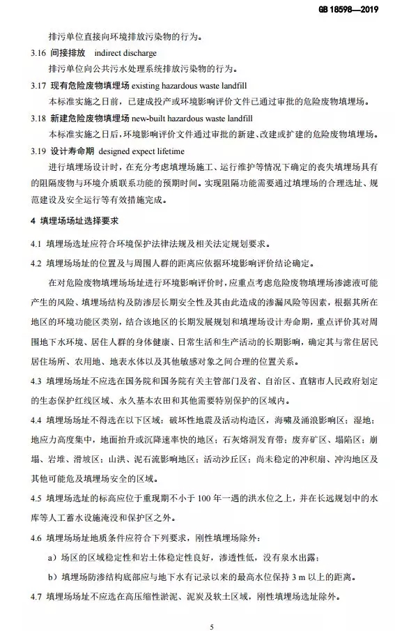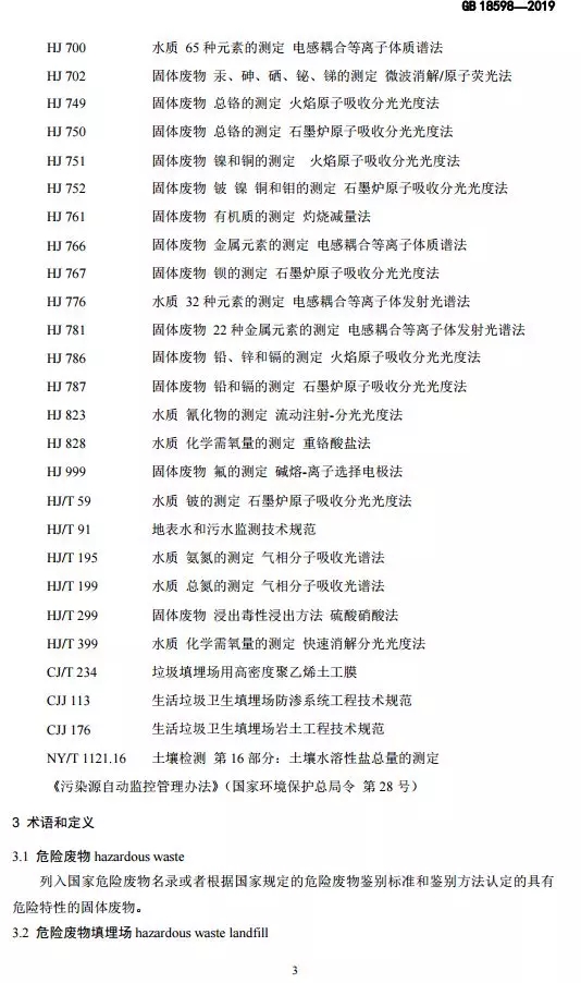 危險廢物填埋污染控制標準(GB 18598-2019)